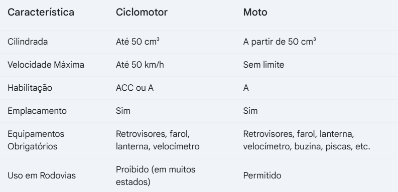 Verdade: Na maioria dos estados, é proibido circular com ciclomotores em rodovias. Verifique a legislação específica do seu estado.