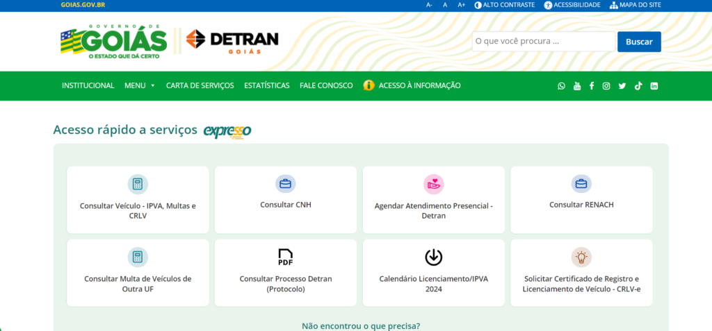 1. Acesse o site oficial do Detran GO.