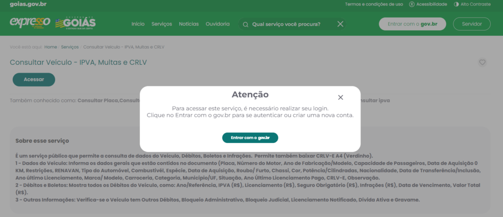 • É necessário ter cadastro no portal do Detran GO para acessar os serviços.