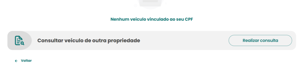 4. Role para o final da tela e acesse a opção “Consultar Veículo de outra Propriedade”, clique em “Realizar Consulta”.
