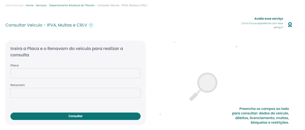 • Documentos e dados do veículo são essenciais para a consulta.