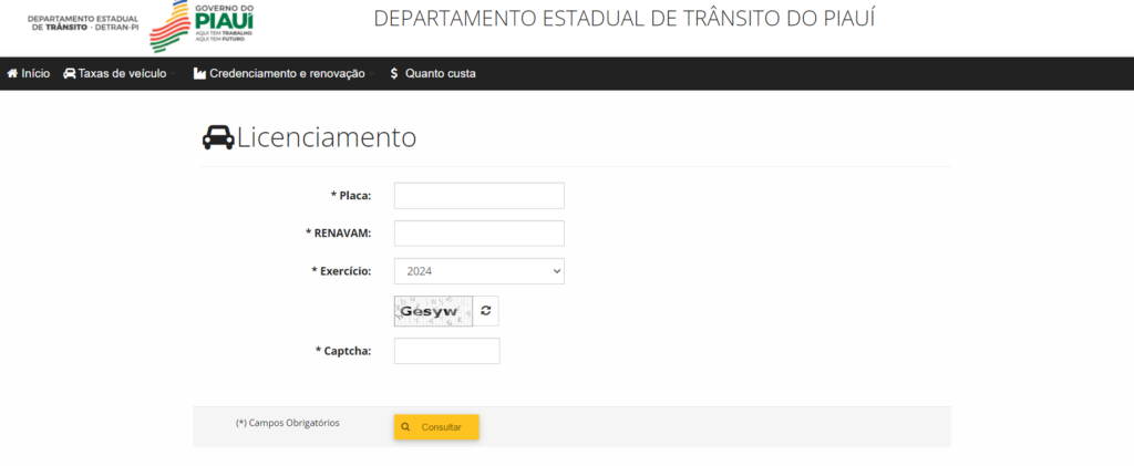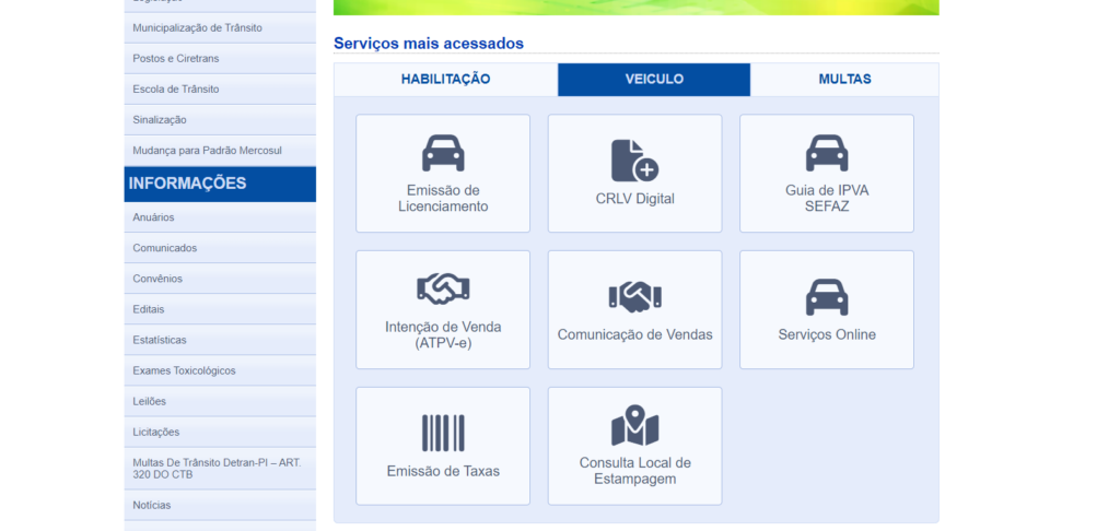 - Acesse o site oficial do Detran PI.