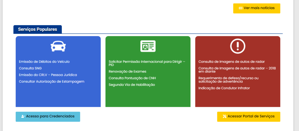 • Agendamento de exames práticos e teóricos, visualização de resultados e acompanhamento da emissão de CNH.