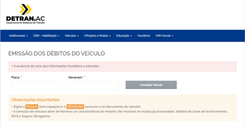 Para saber sobre o licenciamento do seu carro, também é fácil no site do Detran AC: